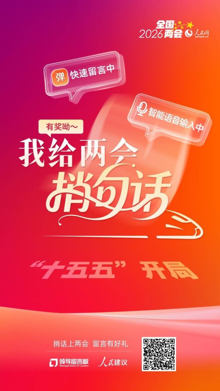 一年一度参与国家大事的机会来了!2026年全国两会召开在即,人民网“我给两会捎句话”建言征集活动(下称“捎句话”活动)正在火热进行中,诚邀社会各界畅叙心声、建言献策,一起托代表委员们捎上两会。