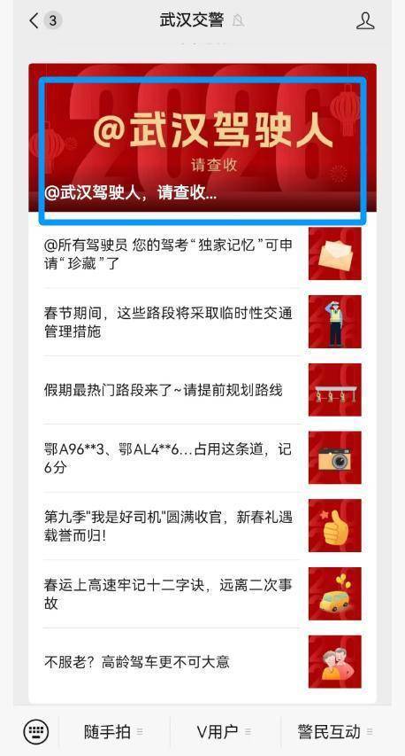 武汉公安交管部门有关负责人介绍,武汉交警推出“2025年度交通安全体检报告”,以武汉交警自有账号功能为载体,用户关注武汉交警微信服务号即可在指尖申领。具体领取方式有3种:一是关注“武汉交警”微信公众号近期推文,进入获取通道即可一键申领;